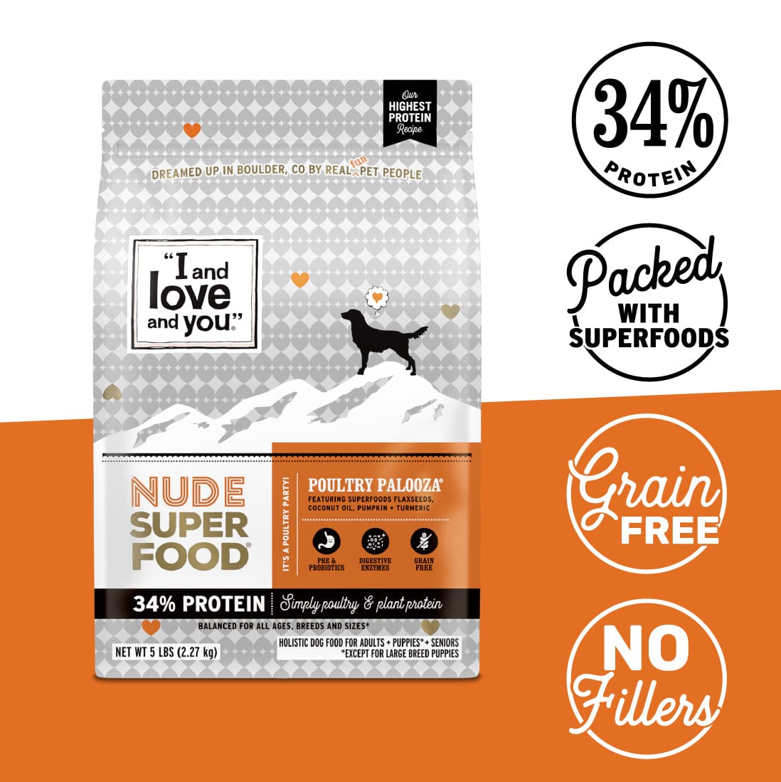 Our range of dry dog food stands out because it’s grain-free (with the exception of our good-for-you ancient grains line!) and caters to dogs with sensitive stomachs. We believe in the power of real ingredients—no mysterious additives or obscure components. Instead, you'll find wholesome, natural elements that you can trust and recognize. This philosophy is at the core of “I and love and you” dog food, where each bag is a testament to our dedication to quality and your dog's health.