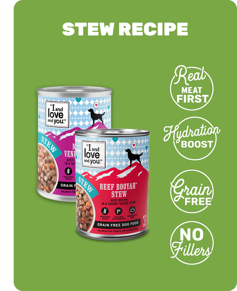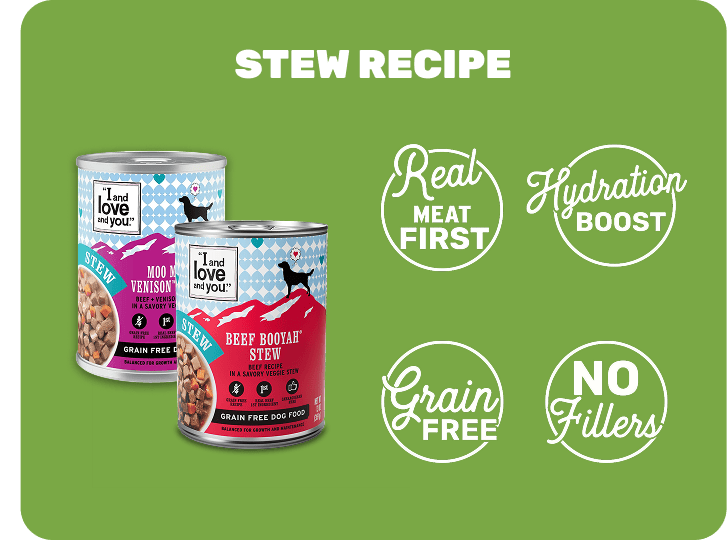 Aside from a great hydration source and the lip-lickin’ good taste of high-quality protein, our complete & balanced wet dog food cans satisfy dogs of alllll ages! Each chunky, tender bite of meaty stew, slathered in rich gravy, will have your pet salivating before you empty out the can into the bowl. Explore our variety packs or load up on your dog’s favorite flavors!